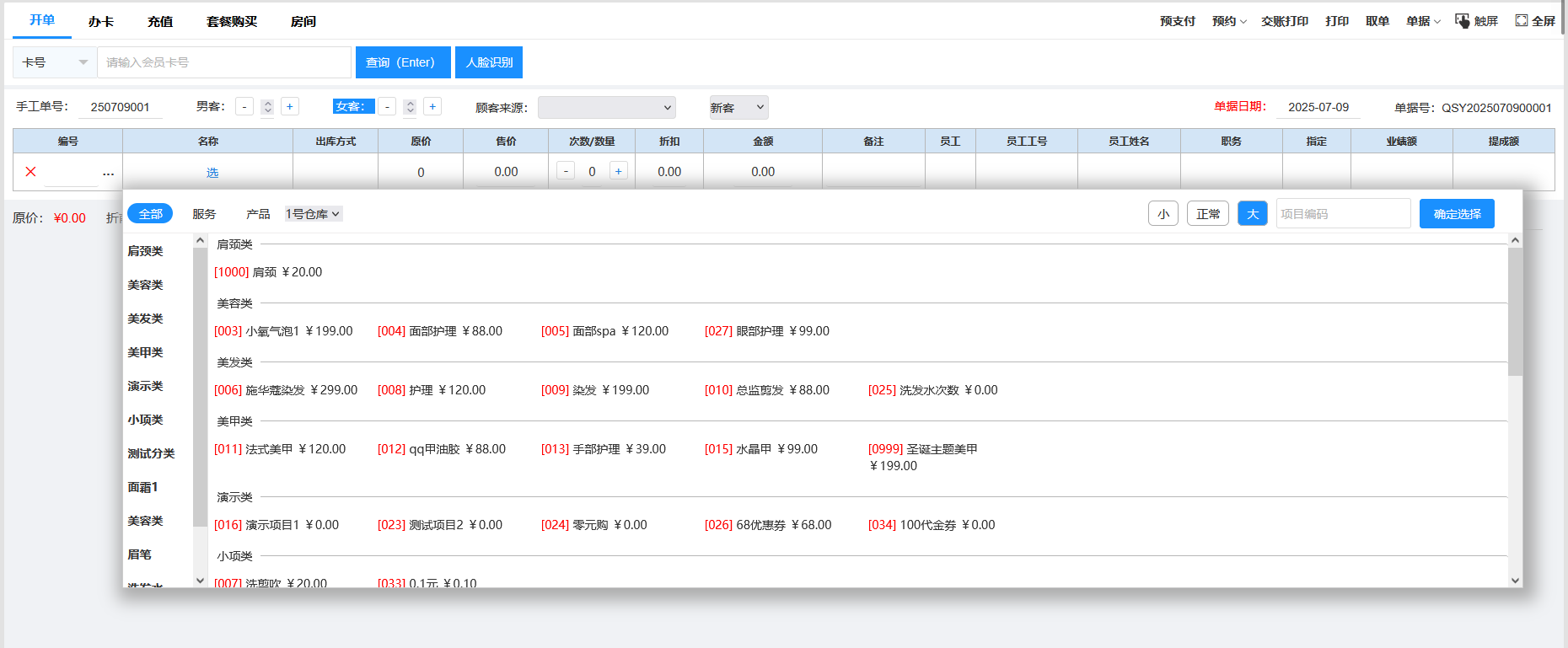 1.新增前台收银的选择项目的窗口可以大框
